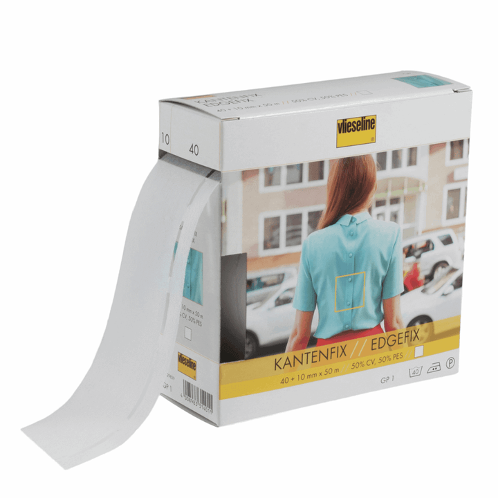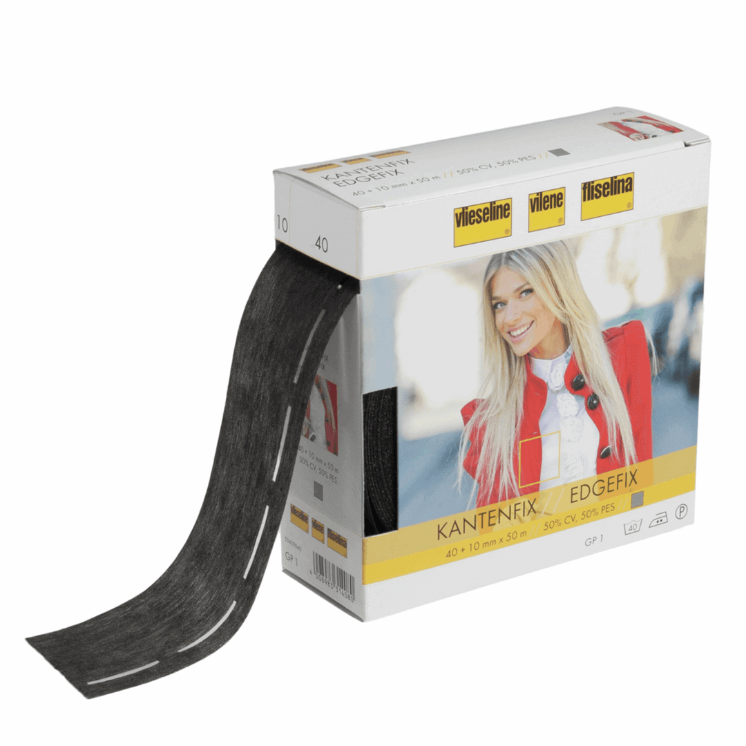 Vlieseline Iron on Fusible Edgefix Placket interfacing: 5cm. White/charcoal. 50m Box