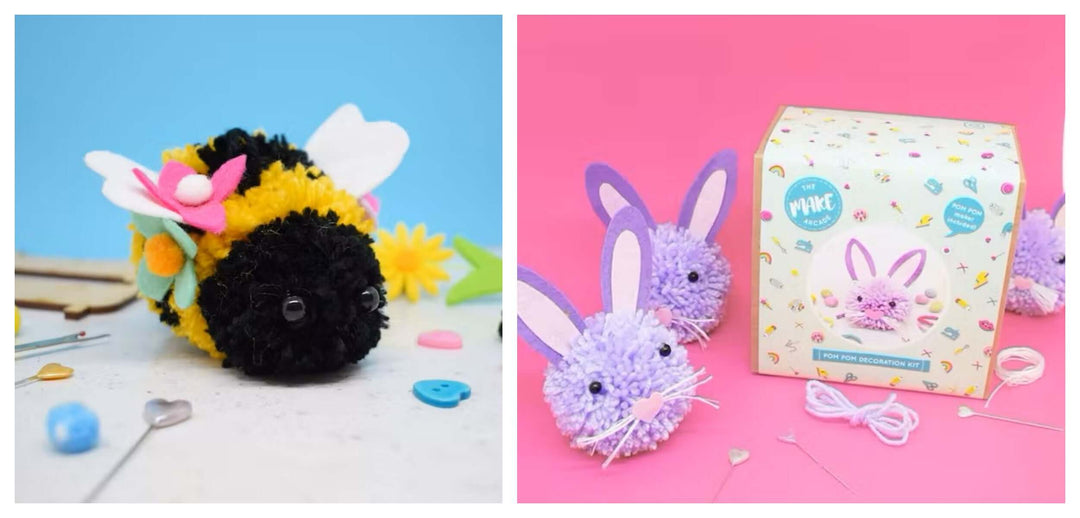Easy kids crafts: Cute Bee/ Bunny Pom Pom Craft Kit by The Make Arcade. UK made