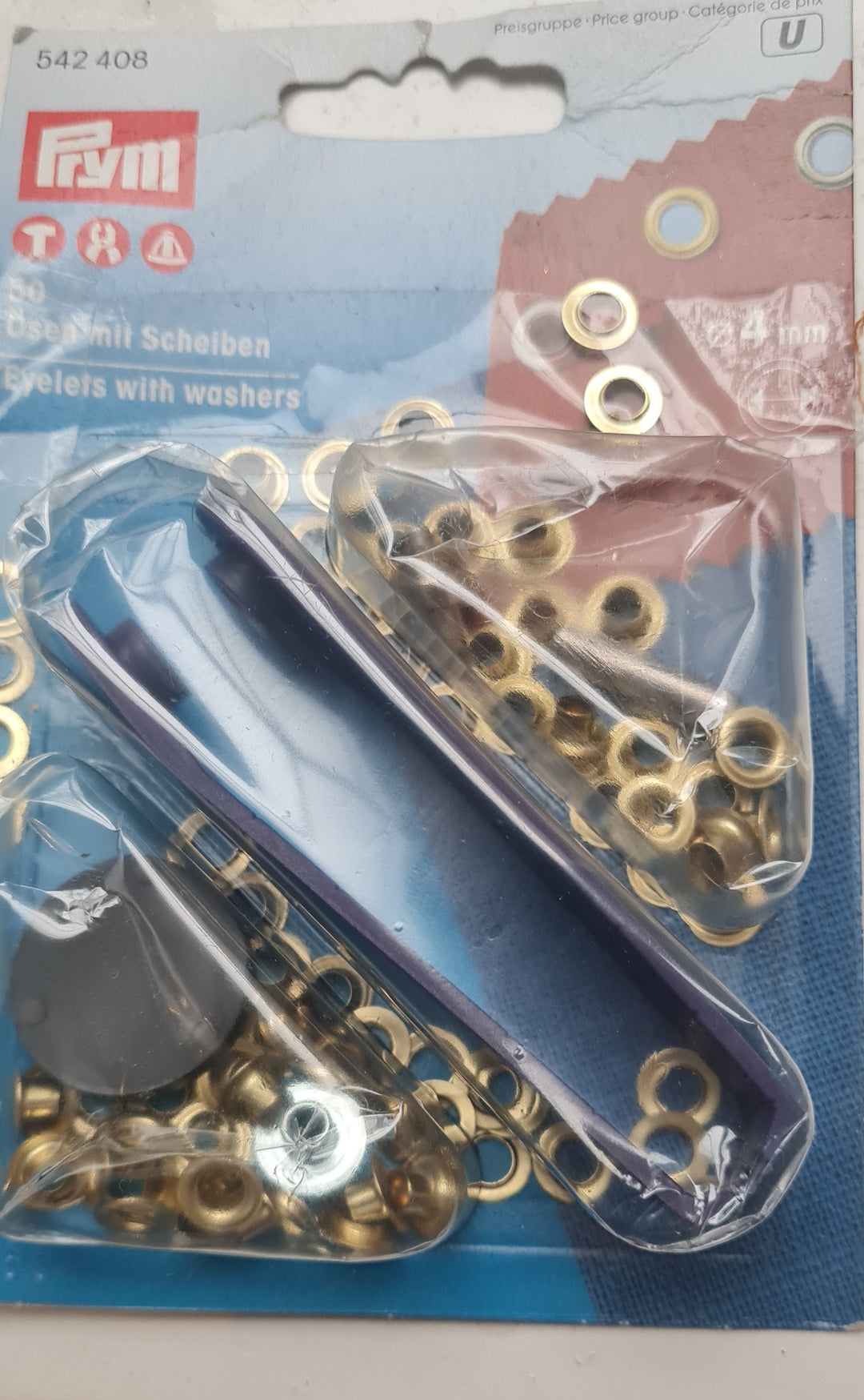 • Prym eyelets - 4mm gold. Some small peice are missing as they escaped from the pack.