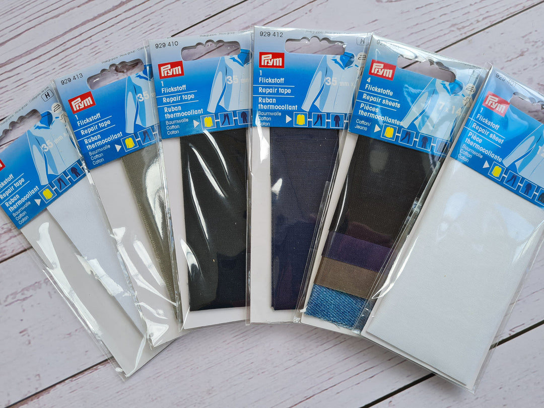 Prym Repair Tape/patch/ repair sheet. Denim, black, white, navy blue, grey.