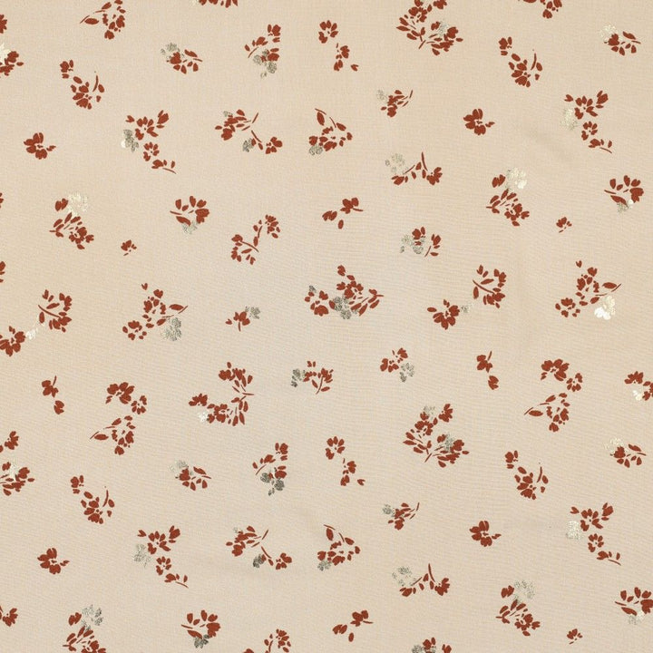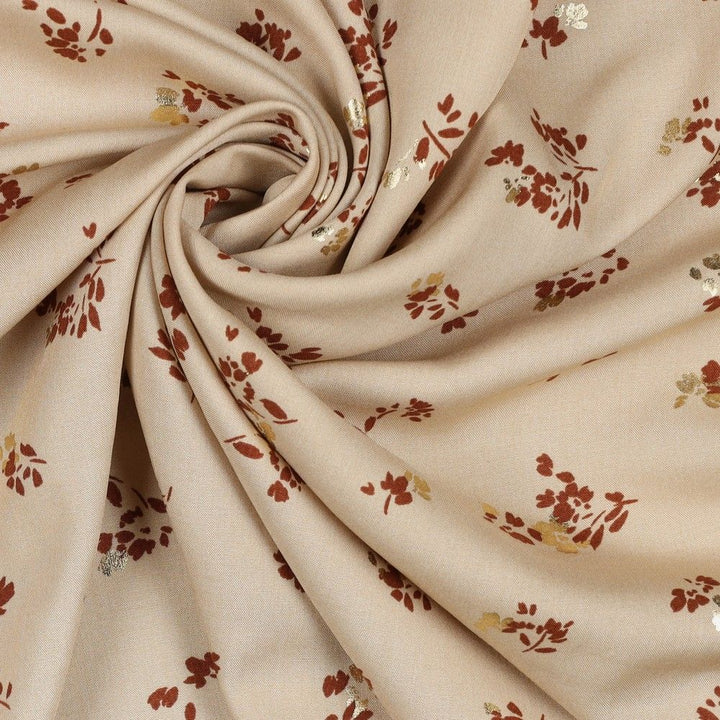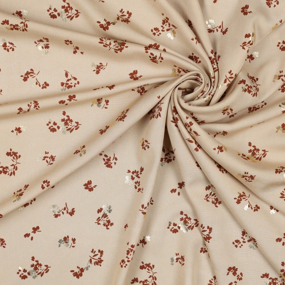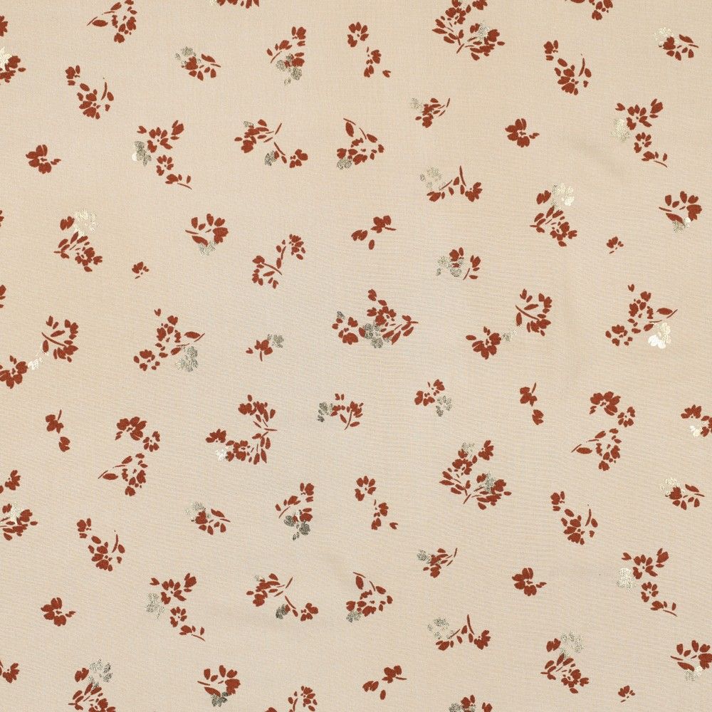 Floral Foil 100% Viscose Challis dress fabric by the half metre. Fawn