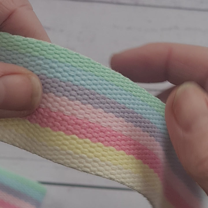 Striped Webbing Per Metre multicolour rainbow bright and pastel stripes.