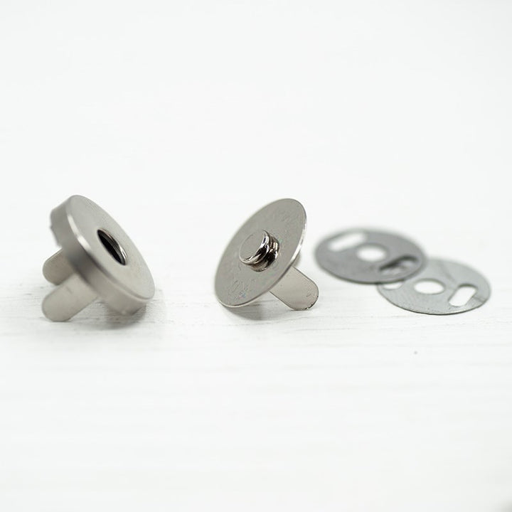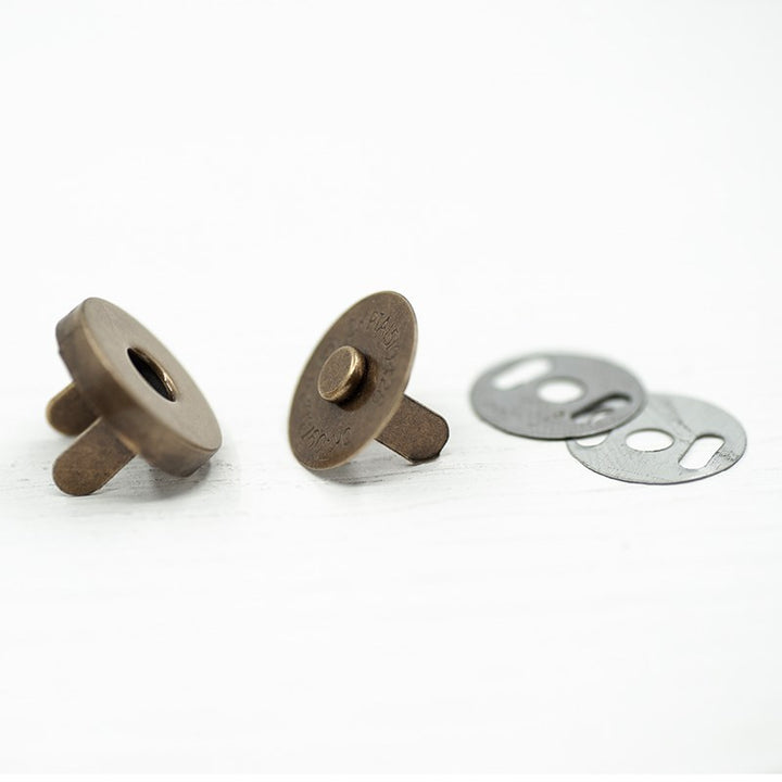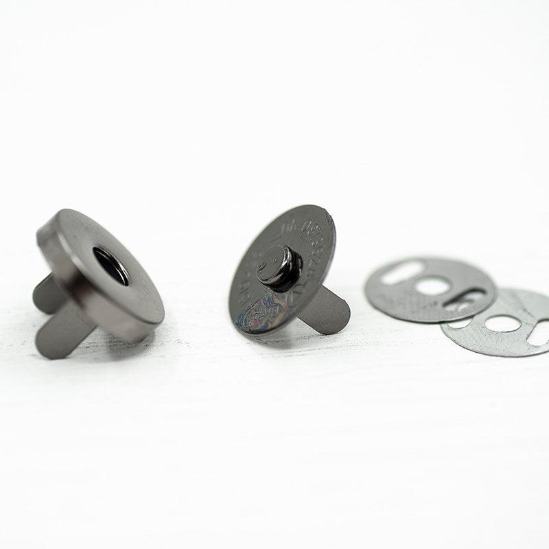 Metal magnetic bag fasteners/closers/poppers for bag making.