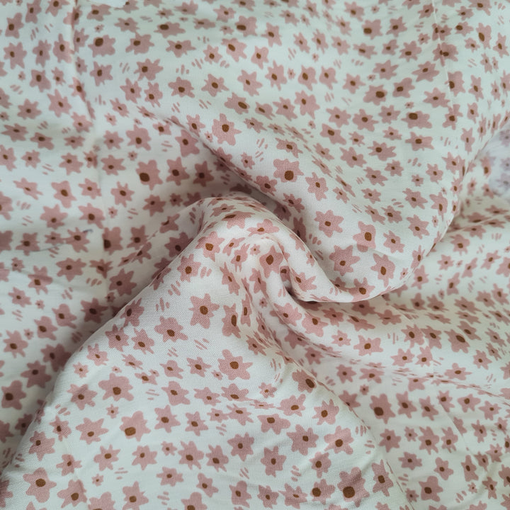 • Ditsy pink floral 100% viscose challis 140cm wide, 110gsm.