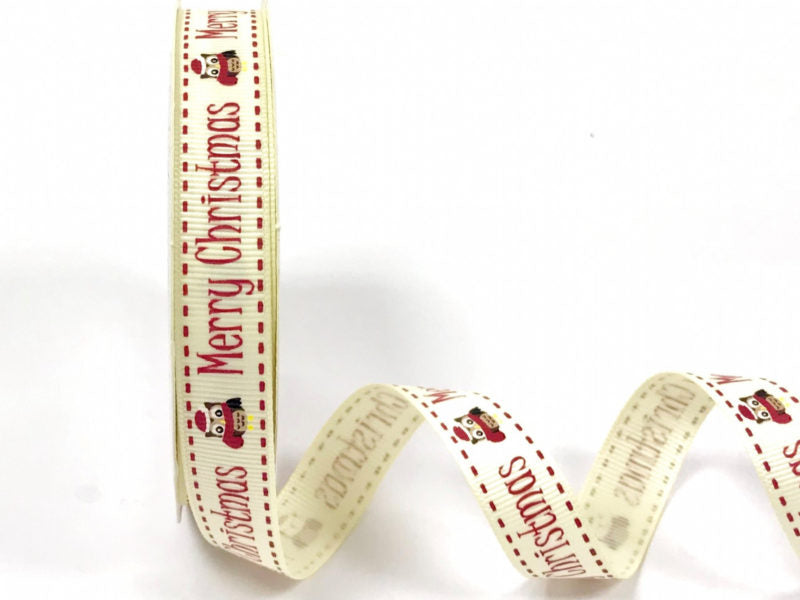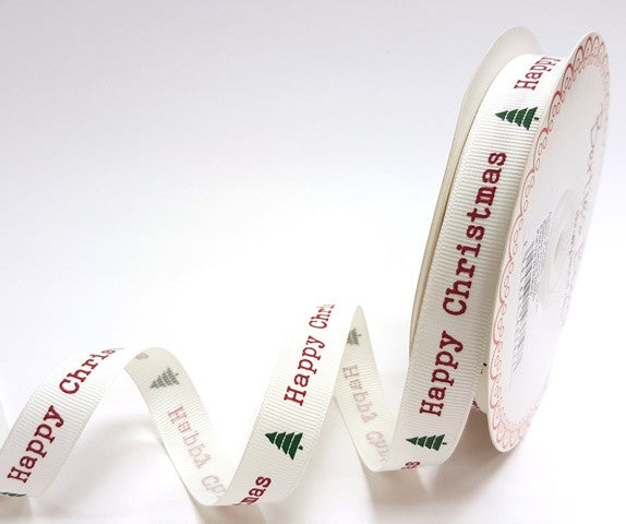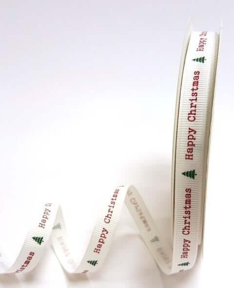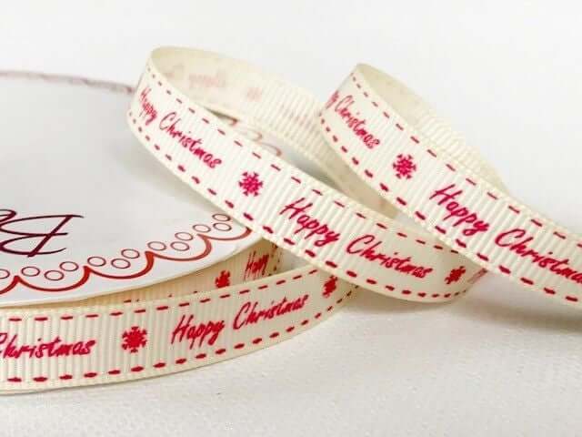 • Red happy Christmas on 9 mm Ivory grosgrain ribbon (3 m)