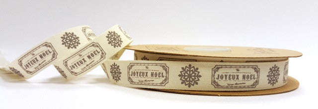 • Vintage style Noel print on 15 mm ivory cotton ribbon (5 m)