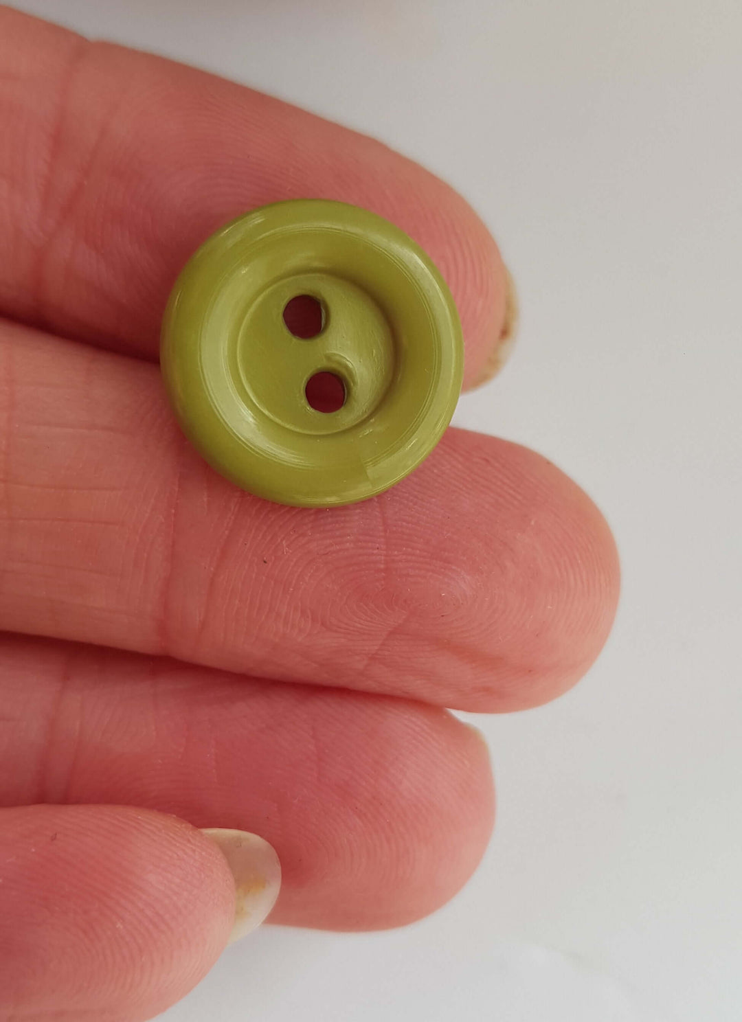 They are round, made of plastic, have 2 holes and are ideal for cardigans, jackets and dresses.