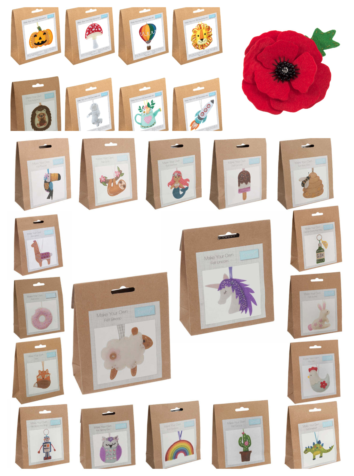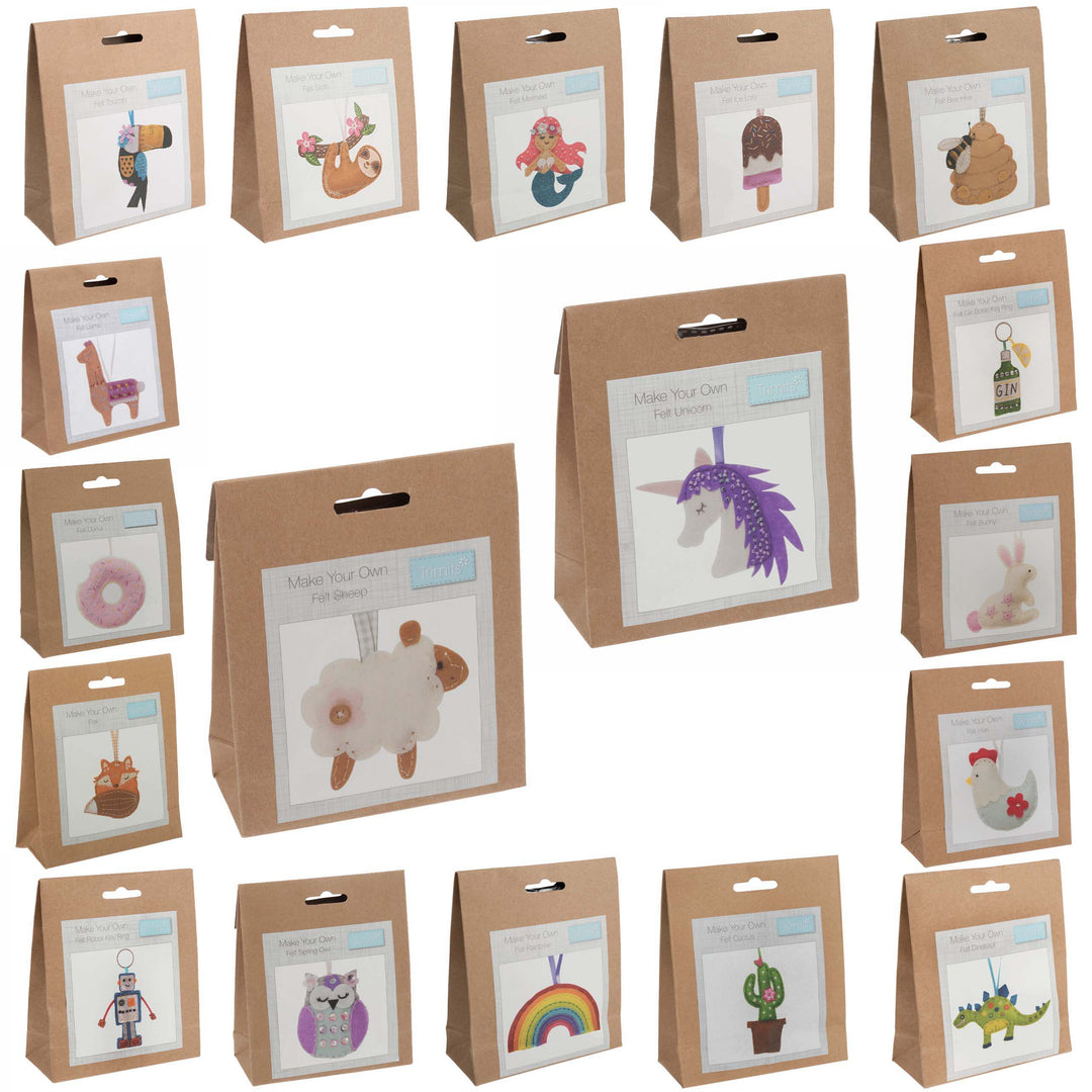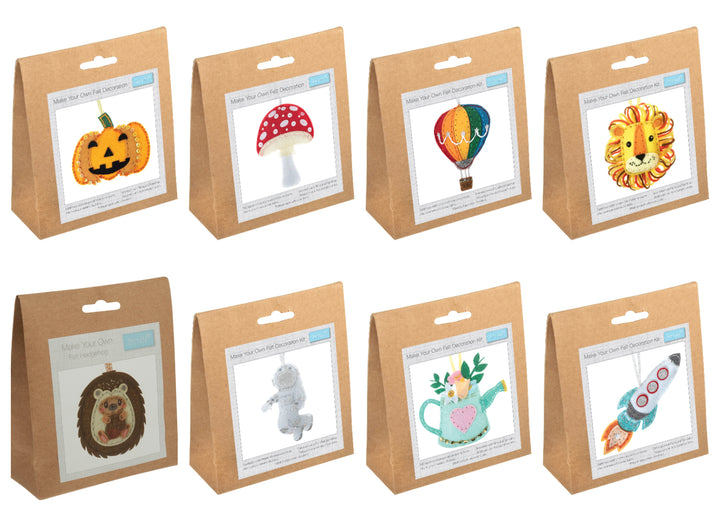 Ideal craft kits for beginners and younger crafters, these kits come with pre-punched shapes to sew together to make a collection of cute decorations.