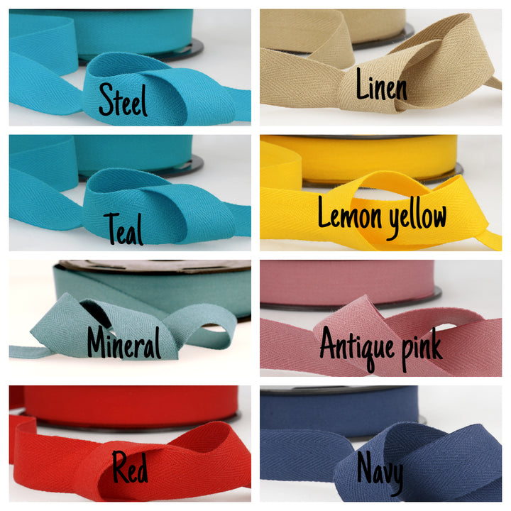 Bertie's Bows Cotton Herringbone Webbing/Tape: 25 mm. Per metre