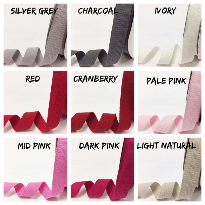 Cotton Herringbone Webbing Twill Tape: 25 mm/40mm wide. Sold per metre