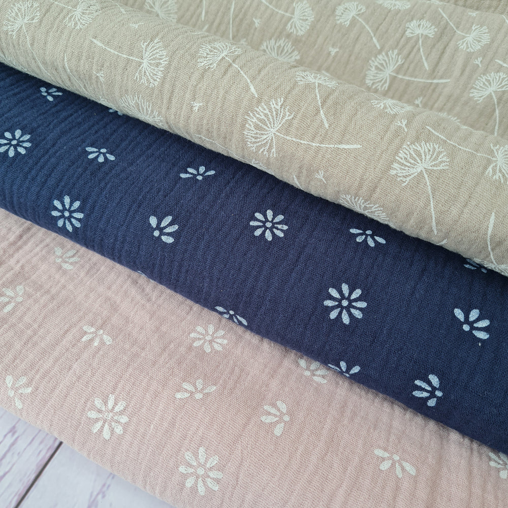 Wild Daisy / Dandelion 100% Cotton Double Gauze muslin fabric: per 1/2m