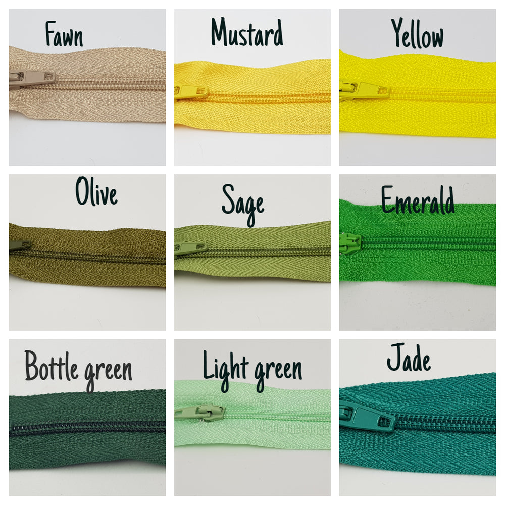 Concealed Invisible closed-end nylon zip No.3 8" 9" 14" 16" 22". Auto-lock. Size 2