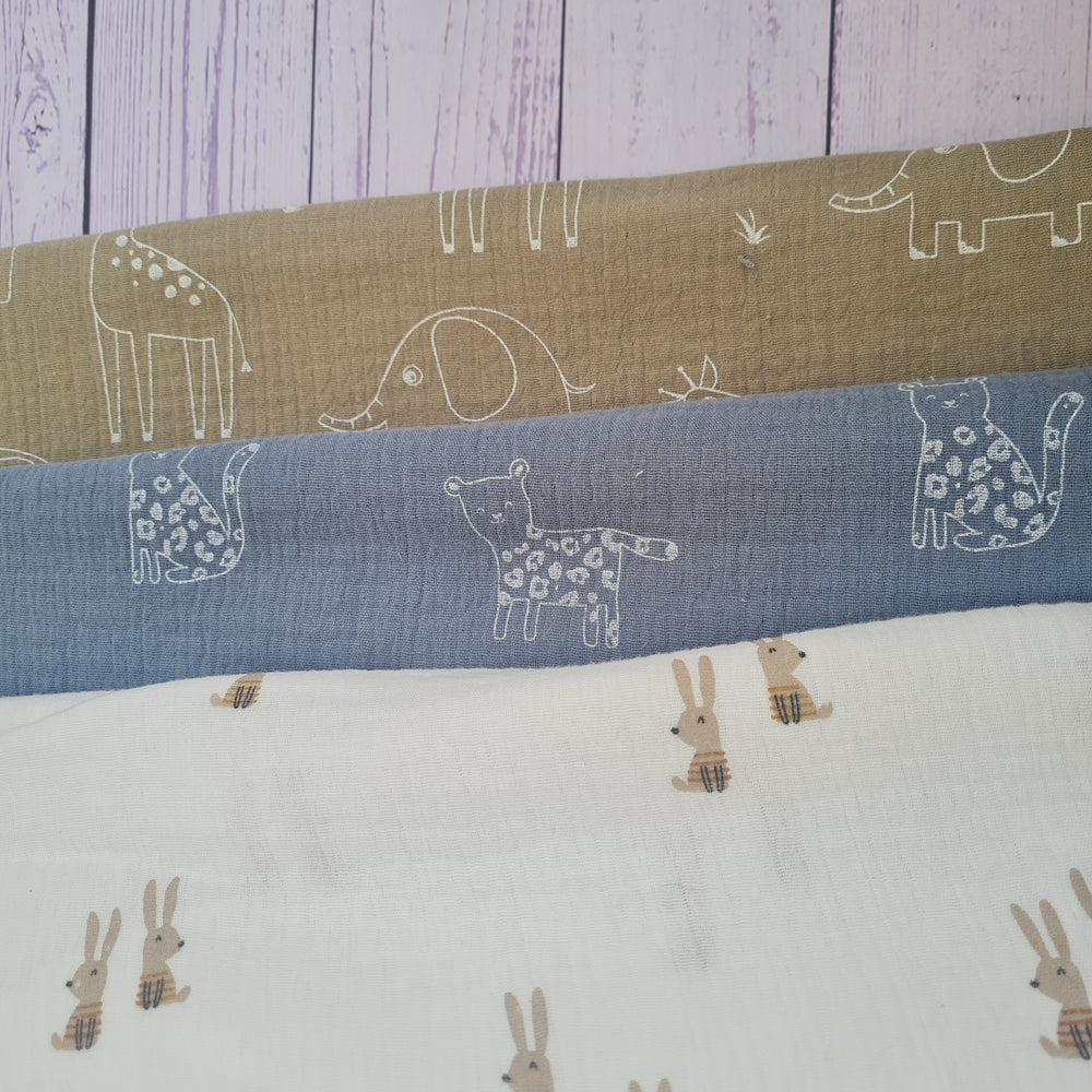 Animal nursery kids 100% cotton double gauze muslin fabric per 1/2m