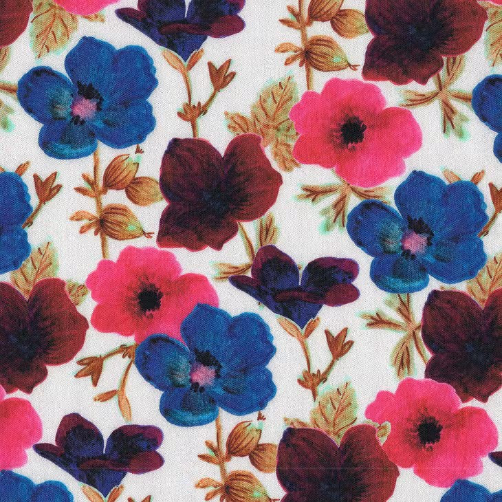 Sweet Sixteen collection 100% viscose floral woven challis fabric. By Cousette. Per 1/2m