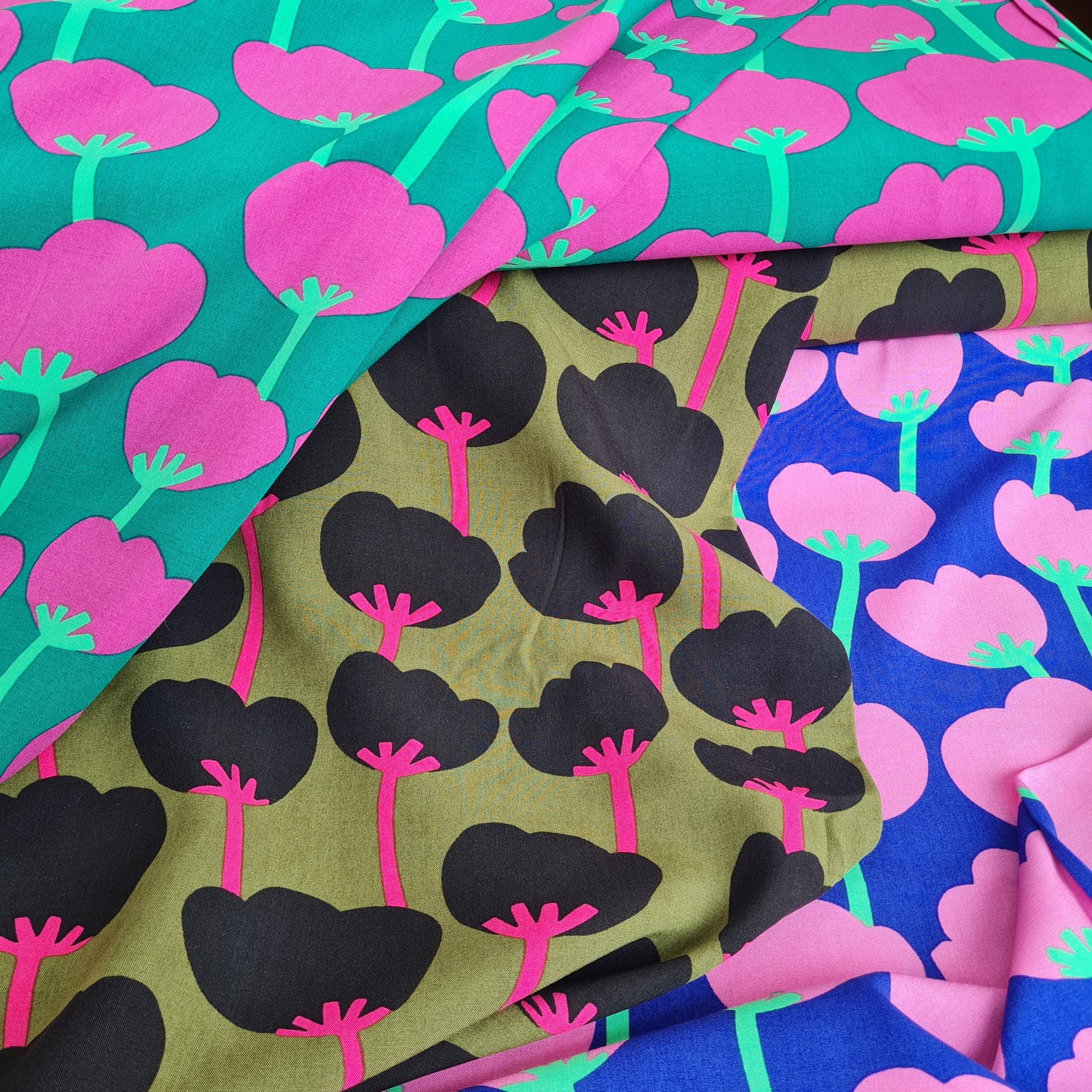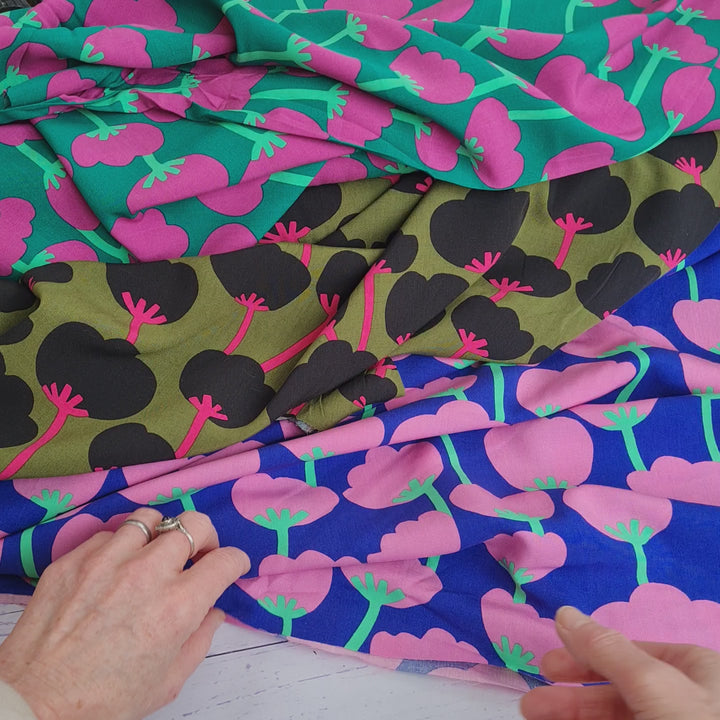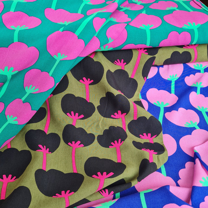 100% Lenzing Ecovero™ Viscose fabric - Rockpool & Poppies by Nerida Hansen. Per 1/2m