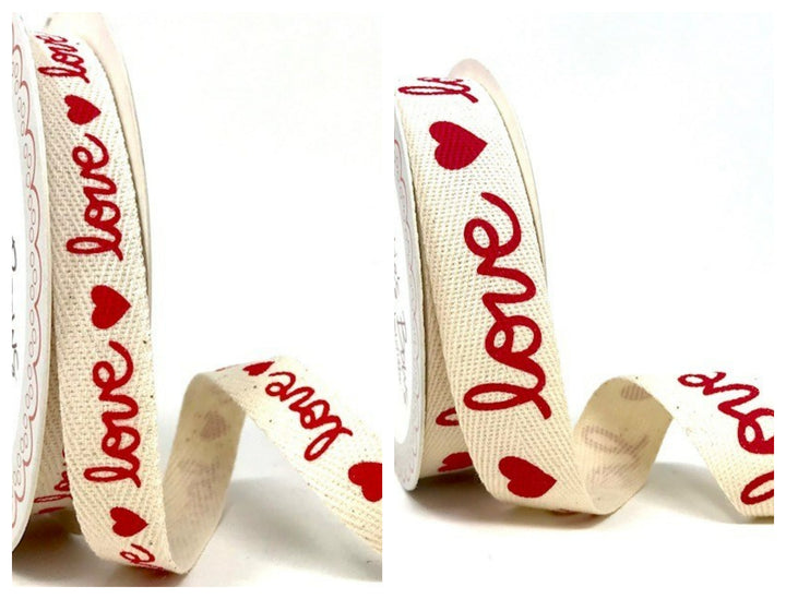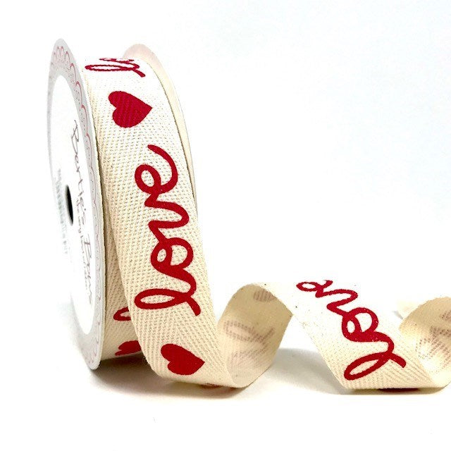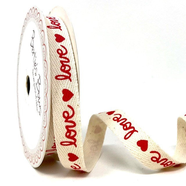 Berties Bows Love and Heart Herringbone cotton ribbon/tape.