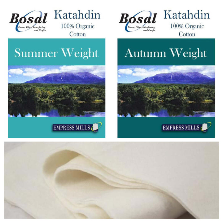 96 inch (2.44m approx) wide 100% organic cotton batting, Summer weight (3oz) and Autumn weight (4oz).