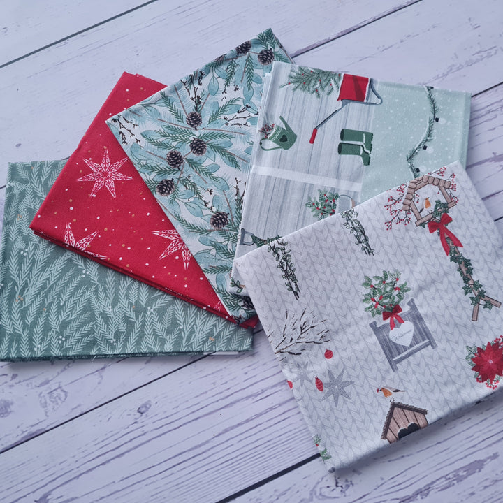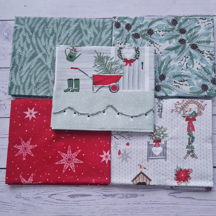 Welcome Home Christmas Garden cotton fat quarter bundle of 5 quilting fabrics.