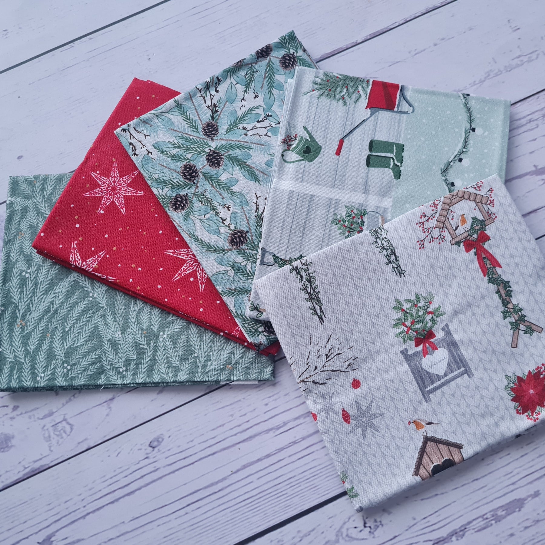 This beautiful set of fabrics feature festive wreaths, stars, mistletoe and christmas trees.