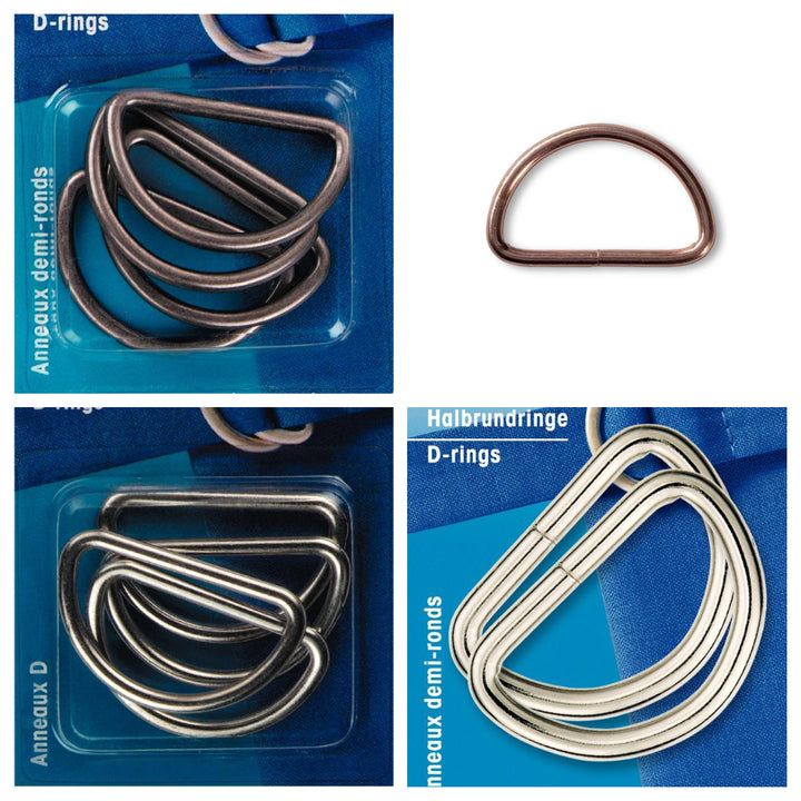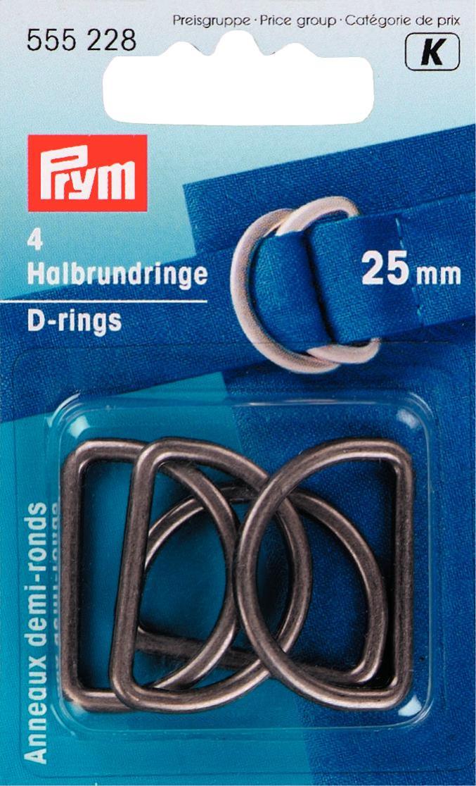 Prym 2/4 pk Welded metal D-rings for bag straps, bag making. 20/ 25 /30 /40 mm