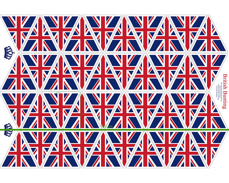 This very popular, make your own bunting fabric features 40 flags on each panel with 1cm seam allowance around each piece to make 20 double sided bunting flags.